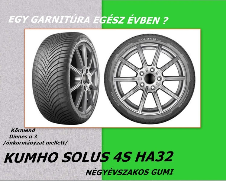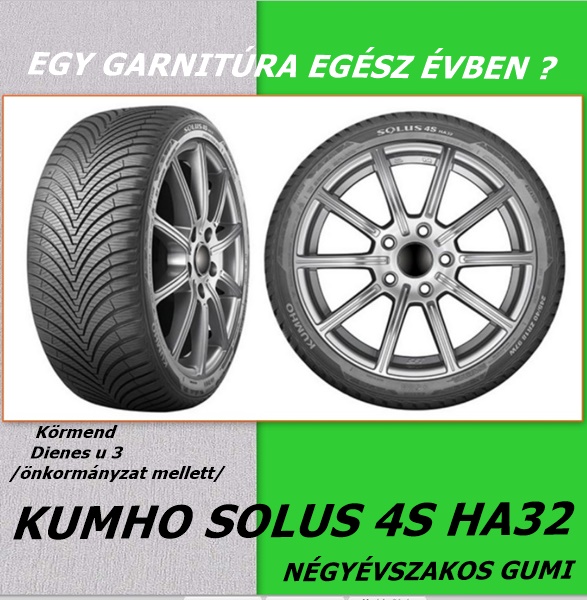 A Kumho Solus 4S HA32 egy négyévszakos személyautó gumiabroncs nagy teljesítménnyel, gazdaságos üzemanyag-fogyasztással, stabil vezetési és fékezőképességgel.
