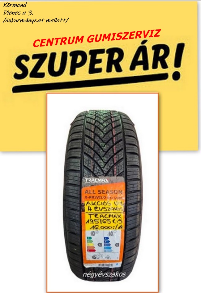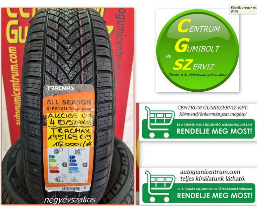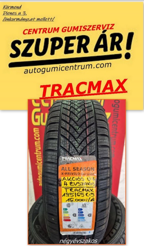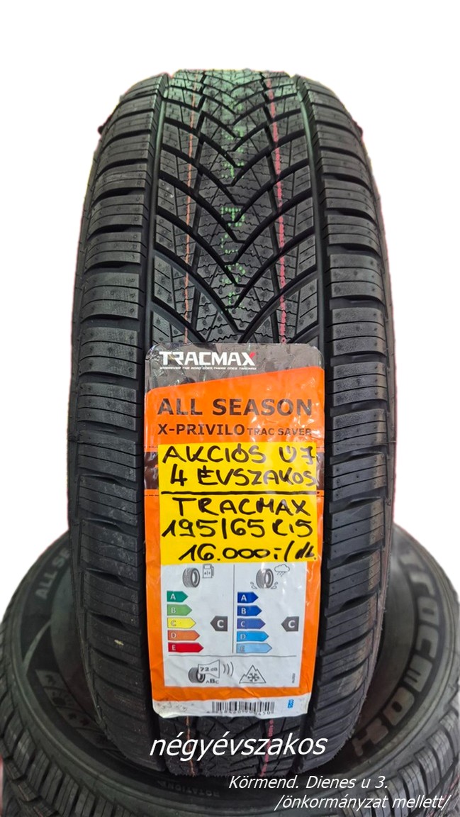 Tracmax Gumiabroncs Gyár 195/65R15 MÉRETű ABRONCSAT H , Azaz Maximálisan 210 km/H Sebesséhez TerveZTE, Ezért 91 VAGYIS 615KG AZEMSZERŰ TERHELHELHEGE. Ez a négyévszakos gumi a Tracmax x-privilo-as-trac-saver elnevezésű mintázatának segítségével tapad az útra, személy abroncs. Az EU-cimkézés A-tól G-ig terjedő skáláján, ahol az A legjobb értékelés, nedves tapadásra C , üzemanyag fogyasztásra C értékelést kapott , míg az abroncs zajszintje 72 dB mely a 2 kategóriába sorolja a gumiabroncsot ebből a szempontból .