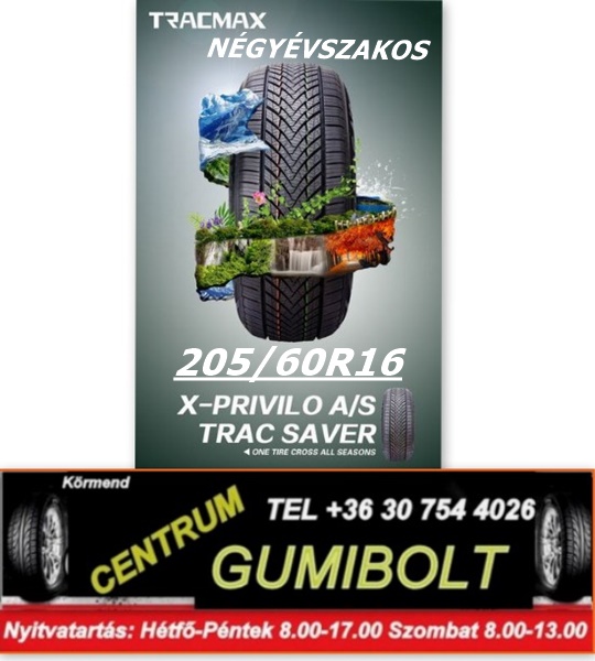 Tracmax X-Privilo A/S Trac Saver 205/60 R16  a márka elsősorban négyévszakos gumiabroncsa ebben a méretben, elérhető különböző magyarországi online és fizikai kereskedőknél.