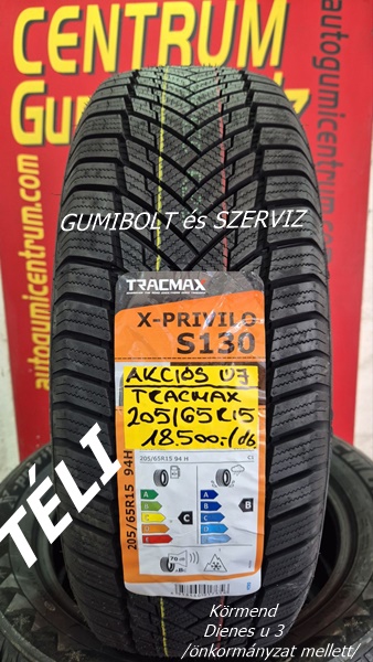 Tracmax  gumiabroncs gyár  205/65R15  méretű abroncsát  H , azaz maximálisan  210 km/h  sebességhez tervezte, ezért  94  vagyis  670kg  az üzemszerű terhelhetősége. Ez a  téli  gumi a  Tracmax  x-privilo-s130  elnevezésű mintázatának segítségével tapad az útra,  személy  abroncs. Az EU-cimkézés A-tól G-ig terjedő skáláján, ahol az A legjobb értékelés, nedves tapadásra  B , üzemanyag fogyasztásra  C  értékelést kapott , míg az abroncs zajszintje  70 dB  mely a  2  kategóriába sorolja a gumiabroncsot ebből a szempontból .