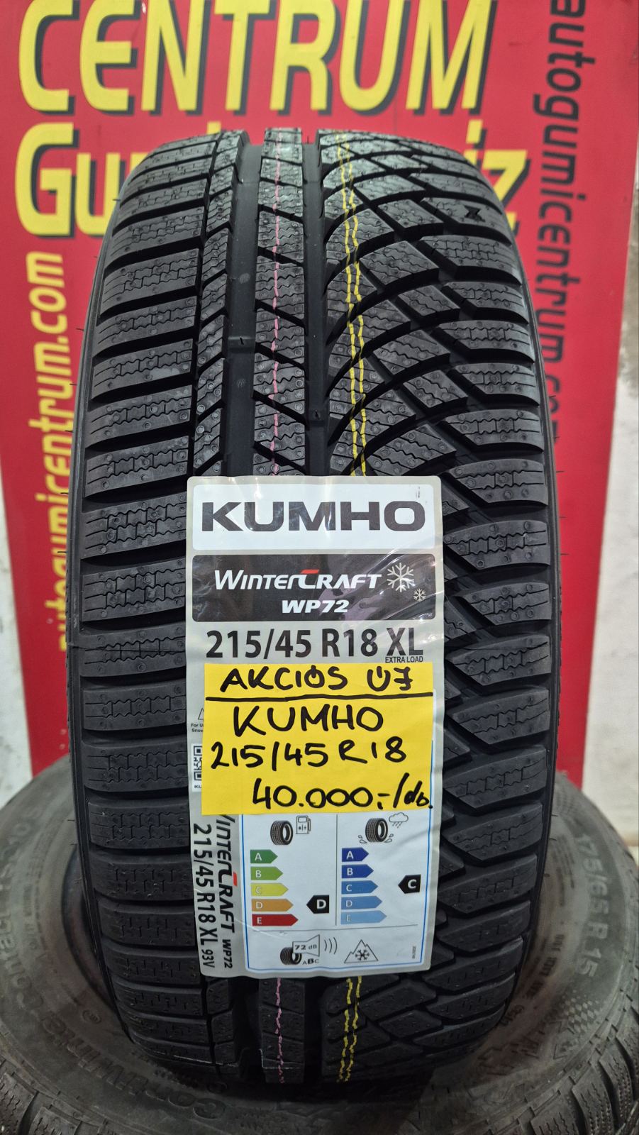 Kumho gumiabroncs gyár 215/45R18 méretű abroncsát V , azaz maximálisan 240 km/h sebességhez tervezte, ezért 93 vagyis 650kg az üzemszerű terhelhetősége. Ez a téli gumi a Kumho wintercraft-wp72 elnevezésű mintázatának segítségével tapad az útra, , erősített oldalfalú személy abroncs. Az EU-cimkézés A-tól G-ig terjedő skáláján, ahol az A legjobb értékelés, nedves tapadásra C , üzemanyag fogyasztásra D értékelést kapott , míg az abroncs zajszintje 72 dB mely a 2 kategóriába sorolja a gumiabroncsot ebből a szempontból .