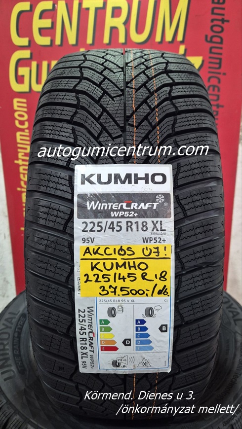 Kumho gumiabroncs gyár 225/45R18 méretű abroncsát V , azaz maximálisan 240 km/h sebességhez tervezte, ezért 95 vagyis 690kg az üzemszerű terhelhetősége. Ez a téli gumi a Kumho wintercraft-wp52 elnevezésű mintázatának segítségével tapad az útra, , erősített oldalfalú személy abroncs. Az EU-cimkézés A-tól G-ig terjedő skáláján, ahol az A legjobb értékelés, nedves tapadásra B , üzemanyag fogyasztásra D értékelést kapott , míg az abroncs zajszintje 72 dB mely a 2 kategóriába sorolja a gumiabroncsot ebből a szempontból .