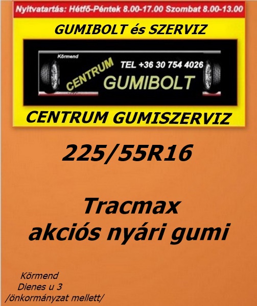 225/55R16 Tracmax akciós nyári gumi.Gumiabroncs kereskedelem és szerviz – gumibolt-gumibolt-es-szerviz- Vásároljon új téli – nyári vagy négyévszakos gumit az Autógumicentrum webshopjában!gumibolt és szerviz – kormend – centrum gumiszerviz -kerék csere – gumicsere – nyári gumik, téli gumik értékesítése –