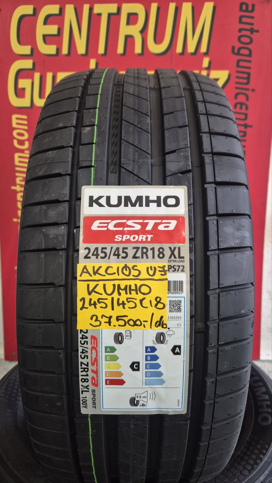 Kumho gumiabroncs gyár 245/45R18 méretű abroncsát Y, azaz maximálisan 300 km/h sebességhez tervezte, 100 vagyis 800kg az üzemszerű terhelhetősége. Ez a nyári gumi a Kumho ecsta-sport-ps72 elnevezésű mintázatának segítségével tapad az útra, , erősített oldalfalú személy abroncs. Az EU-cimkézés A-tól G-ig terjedő skáláján, ahol az A legjobb értékelés, nedves tapadásra A, üzemanyag fogyasztásra C értékelést kapott , míg az abroncs zajszintje 72 dB mely a 2 kategóriába sorolja a gumiabroncsot ebből a szempontból .